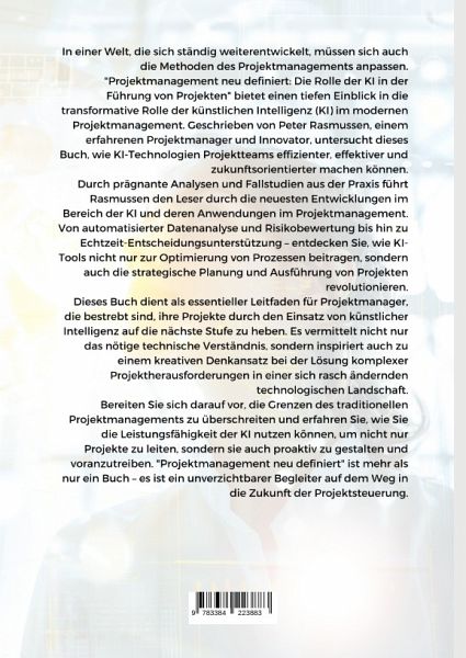 In einer Welt, die sich ständig weiterentwickelt, müssen sich auch die Methoden des Projektmanagements anpassen. "Projektmanagement neu definiert: Die Rolle der KI in der Führung von Projekten" bietet einen tiefen Einblick in die transformative Rolle der künstlichen Intelligenz (KI) im modernen Projektmanagement. Geschrieben von Peter Rasmussen, einem erfahrenen Projektmanager und Innovator, untersucht dieses Buch, wie KI-Technologien Projektteams effizienter, effektiver und zukunftsorientierter machen können.Durch prägnante Analysen und Fallstudien aus der Praxis führt Rasmussen den Leser durch die neuesten Entwicklungen im Bereich der KI und deren Anwendungen im Projektmanagement. Von automatisierter Datenanalyse und Risikobewertung bis hin zu Echtzeit-Entscheidungsunterstützung - entdecken Sie, wie KI-Tools nicht nur zur Optimierung von Prozessen beitragen, sondern auch die strategische Planung und Ausführung von Projekten revolutionieren.Dieses Buch dient als essentieller Leitfaden für Projektmanager, die bestrebt sind, ihre Projekte durch den Einsatz von künstlicher Intelligenz auf die nächste Stufe zu heben. Es vermittelt nicht nur das nötige technische Verständnis, sondern inspiriert auch zu einem kreativen Denkansatz bei der Lösung komplexer Projektherausforderungen in einer sich rasch ändernden technologischen Landschaft.Bereiten Sie sich darauf vor, die Grenzen des traditionellen Projektmanagements zu überschreiten und erfahren Sie, wie Sie die Leistungsfähigkeit der KI nutzen können, um nicht nur Projekte zu leiten, sondern sie auch proaktiv zu gestalten und voranzutreiben. "Projektmanagement neu definiert" ist mehr als nur ein Buch - es ist ein unverzichtbarer Begleiter auf dem Weg in die Zukunft der Projektsteuerung.