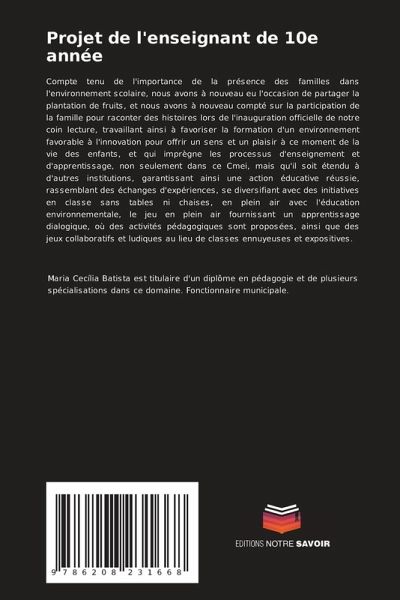 Compte tenu de l'importance de la présence des familles dans l'environnement scolaire, nous avons à nouveau eu l'occasion de partager la plantation de fruits, et nous avons à nouveau compté sur la participation de la famille pour raconter des histoires lors de l'inauguration officielle de notre coin lecture, travaillant ainsi à favoriser la formation d'un environnement favorable à l'innovation pour offrir un sens et un plaisir à ce moment de la vie des enfants, et qui imprègne les processus d'enseignement et d'apprentissage, non seulement dans ce Cmei, mais qu'il soit étendu à d'autres institutions, garantissant ainsi une action éducative réussie, rassemblant des échanges d'expériences, se diversifiant avec des initiatives en classe sans tables ni chaises, en plein air avec l'éducation environnementale, le jeu en plein air fournissant un apprentissage dialogique, où des activités pédagogiques sont proposées, ainsi que des jeux collaboratifs et ludiques au lieu de classes ennuyeuses et expositives.