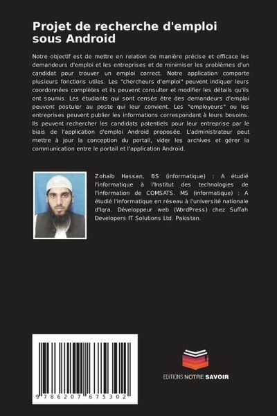 Notre objectif est de mettre en relation de manière précise et efficace les demandeurs d'emploi et les entreprises et de minimiser les problèmes d'un candidat pour trouver un emploi correct. Notre application comporte plusieurs fonctions utiles. Les "chercheurs d'emploi" peuvent indiquer leurs coordonnées complètes et ils peuvent consulter et modifier les détails qu'ils ont soumis. Les étudiants qui sont censés être des demandeurs d'emploi peuvent postuler au poste qui leur convient. Les "employeurs" ou les entreprises peuvent publier les informations correspondant à leurs besoins. Ils peuvent rechercher les candidats potentiels pour leur entreprise par le biais de l'application d'emploi Android proposée. L'administrateur peut mettre à jour la conception du portail, vider les archives et gérer la communication entre le portail et l'application Android.