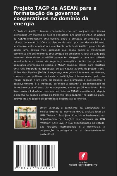 O Sudeste Asiático tem-se confrontado com um conjunto de dilemas interligados em matéria de política energética. Em junho de 1992, os países da ASEAN enfrentaram uma escolha entre a proteção do ambiente e o reforço do comércio. Com o objetivo de zelar por um desenvolvimento sustentável entre a indústria e o ambiente, o Sudeste Asiático parece ter de aplicar uma política mais adequada que possa apoiar o crescimento económico em detrimento da preservação do ambiente natural de cada país membro. Além disso, a ASEAN parece ter chegado a uma encruzilhada semelhante em termos de segurança energética. A fim de garantir a segurança energética na região, a ASEAN anunciou planos para construir uma rede integrada de gasodutos de gás natural através do projeto Trans-ASEAN Gas Pipeline (TAGP). A segurança energética é também um sistema, composto por políticas nacionais e instituições internacionais, pelo que requer políticas e um clima empresarial que promovam o investimento, o desenvolvimento e a inovação, de modo a garantir a disponibilidade de fornecimentos e infra-estruturas adequados, em tempo útil e no futuro. Este livro revela a Indonésia como um país líder na ASEAN, considerando depois a direção da política externa da Indonésia para cooperar no sistema global através de um quadro de governação cooperativa da energia.