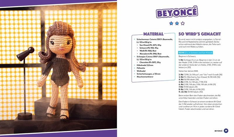 Wolltest du schon immer eine Mini-Version von Karl Lagerfeld haben? Oder ist Lady Gaga deine persönliche Promi-Heldin? Mit diesem Häkelbuch werden all dein Fan-Träume wahr! Denn neben diesen beiden Kultfiguren erwarten dich die Häkelanleitungen zu noch vielen weiteren Promis als Amigurumi:
