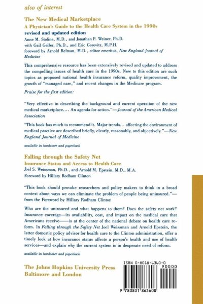 Approximately one-quarter of the U.S. population is enrolled in HMOs or similar managed care health plans, and the proportion is increasing. But even though such plans dominate today's agenda for health care reform, good, quantitative information on the performance of managed care programs is scarce. In Promise and Performance in Managed Care, Donald K. Freeborn and Clyde R. Pope draw on the research literature and unique data sources to provide that information. Focusing on the human experience of managed care, the authors examine the effects of managed care on members as well as physicians -- assessing whether members are satisfied with the care they receive, and how physicians evaluate their experience with managed care. After offering a brief history of managed care in the United States, the book addresses such questions as what determines the choice of a health plan, access to care, patient satisfaction, physician satisfaction, and the implications of these findings for the future of managed care. Serving as both a standard against which to examine the effectiveness of proposed reforms and as a methodological "how to" for the evaluation of system changes, the book will be of interest to professionals and students of health policy as well as to HMO administrators and practitioners.