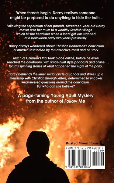 A Young Adult Mystery from the author of Follow Me A Murder. A Conviction. A lie? When threats begin, Darcy realises someone might be prepared to do anything to hide the truth... Following the separation of her parents, seventeen-year-old Darcy moves with her mum to a wealthy Scottish village which hit the headlines when a local girl was stabbed at a Halloween party two years previously. Darcy always wondered about Christian Henderson's conviction of murder, fascinated by this attractive misfit and his story. Much of Christian's trial took place online, before he even reached the courtroom, with witch-hunt style podcasts and online forums spinning stories of what happened the night of the party. Darcy befriends the inner social circle at school and strikes up a friendship with Christian through letters, determined to uncover unanswered questions around the conviction. But who can she believe?