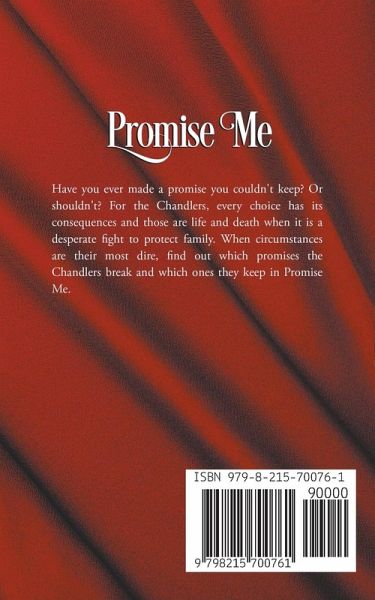 Have you ever made a promise you couldn't keep? Or shouldn't? For the Chandlers, every choice has its consequences and those are life and death when it is a desperate fight to protect family. When circumstances are their most dire, find out which promises the Chandlers break and which ones they keep in Promise Me.
