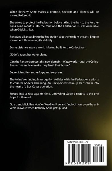 When Bethany Anne makes a promise, heavens and planets will be moved to keep it. She swore to protect the Federation before taking the fight to the Kurtherians. Nine months into the tour, and the Federation is still vulnerable when Gödel strikes. Renewed alliances bring the Federation together to fight the anti-Empire movement threatening its stability. Some distance away, a world is being built for the Collectives. Gödel's agent has other plans. Can the Rangers protect this new domain - Waterworld - until the Collectives arrive and can make the planet their home? Secret identities, subterfuge, and surprises. The twins' continuing investigation collides with the Federation's efforts to counter Gödel's scheming. An unexpected team-up leads them into the heart of a Spy Corps operation. Forced into a race against time, unraveling Gödel's secrets is the one hope for them all. Go up and click 'Buy Now' or 'Read for Free' and find out how even the universe is aware when Bethany Anne gets pissed.