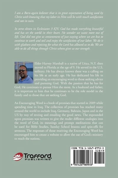 Author Harvey Marshall gleaned great thoughts, ideas, and inspiration while reading the Bible, and he wanted to share what he found with others. At first, he texted the encouraging words he learned by cell phone. Then, he sent them via e-mail, and finally he created a website with which to share the good news. In Promises to Confess to, Marshall shares these lessons, gleaned from Scripture readings, and discusses the meanings behind the encouraging words and the promises from God that are a part of the Bible's message. He follows each short inspiration with a confession or prayer that relates to the discussion. Promises to Confess to provides a lens through which to look at God and to appreciate the many colors that his glory has allowed to fall upon the earth.