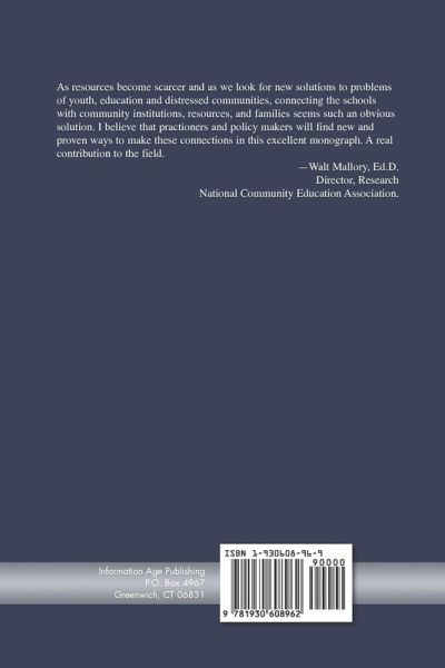 This monograph offers insights into what actually works in developing school-community connections. Topics include: school-linked service programmes; school-business partnerships; and schools and communities working together to implement youth behavioural health programmes.
