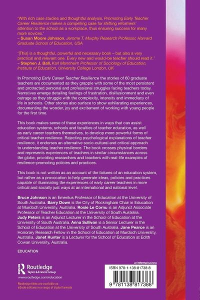 In Promoting Early Career Teacher Resilience the stories of 60 graduate teachers are documented as they grapple with some of the most persistent and protracted personal and professional struggles facing teachers today. Narratives emerge detailing feelings of frustration, disillusionment and even outrage as they struggle with the complexity, intensity and immediacy of life in schools. Other stories also surface to show exhilarating experiences, documenting the wonder, joy and excitement of working with young people for the first time. This book makes sense of these experiences in ways that can assist education systems, schools, and faculties of teacher education, as well as early career teachers themselves to develop more powerful forms of critical teacher resilience. Rejecting psychological explanations of teacher resilience, it endorses an alternative socio-cultural and critical approach to understanding teacher resilience. The book crosses physical borders and represents experiences of teachers in similar circumstances across the globe, providing researchers and teachers with real-life examples of resilience promoting policies and practices. This book is not written as an account of the failures of an education system, but rather as a provocation to help generate ideas, policies and practices capable of illuminating the experiences of early career teachers in more critical and socially just ways at an international and national level.