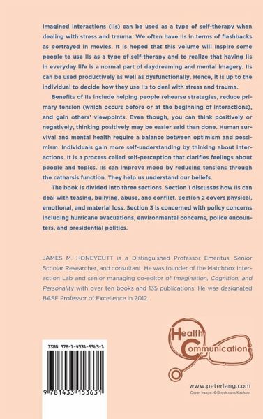 Imagined interactions (IIs) can be used as a type of self-therapy when dealing with stress and trauma. We often have IIs in terms of flashbacks as portrayed in movies. It is hoped that this volume will inspire some people to use IIs as a type of self-therapy and to realize that having IIs in everyday life is a normal part of daydreaming and mental imagery. IIs can be used productively as well as dysfunctionally. Hence, it is up to the individual to decide how they use IIs to deal with stress and trauma.