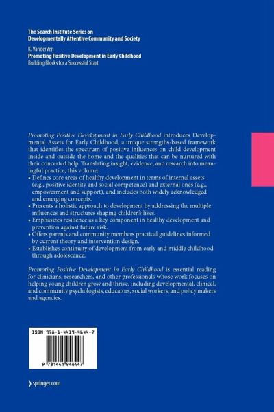 The External Assets.- The Support Assets.- The Empowerment Assets.- The Boundaries-and-Expectations Assets.- The Constructive-Use-of-Time Assets.- The Internal Assets.- The Commitment-to-Learning Assets.- The Positive Values Assets.- The Social-Competencies Assets.- The Positive-Identity Assets.- The Conceptualization of the Early Childhood Developmental Assets Framework.- The Early Childhood Developmental Assets Framework as Intervention: Theoretical and Knowledge Base.- Emergent Perspectives on the Early Childhood Developmental Assets Framework.- Pathways Toward the Future and the Early Childhood Developmental Assets Framework.