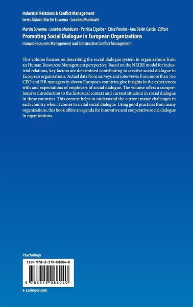 Chapter 1: Employee Representatives in European Organizations; Martin Euwema, Ana García, Lourdes Munduate, Patricia Elgoibar and Erica Pender.- Chapter 2: Belgium: Management Perceptions of Social Dialogue at the Company Level in Belgium; Valeria Pulignano and Nadja Doerflinger.- Chapter 3: Denmark: Employee Representatives in Denmark. How Employers See them and What they Expect; Soren Viemose and Hans Jørgen Limborg.- Chapter 4: Estonia: Employee Representatives in Estonia. How are they Perceived and What are the Expectations by Employers in Estonia? Mare Teichmann and Merle Lõhmus.- Chapter 5: France: Employee Representatives in France: Employers' Perceptions and Expectations Towards Improved Industrial Relations; Aurélien Colson, Patricia Elgoibar and Francesco Marchi.- Chapter 6: Germany: Management's Perceptions of Social Dialogue at the Company Level in Germany; Michael Whittall.- Chapter 7: Italy: Management's Perceptions of Social Dialogue at the Company Level in Italy; Giovanni Passarelli.- Chapter 8: The Netherlands: Industrial Relations and Works Councils in The Netherlands. Results from Interviews and a Survey Among HR Managers; Aukje Nauta.- Chapter 9: Poland: Employee Representatives in Poland. How are they Perceived and What are the Expectations by Employers in Poland? Barbara Kozusznik and Jaroslaw Polak.- Chapter 10: Portugal: Employee Representatives in Portugal. How are they Perceived and What are the Expectations of Employees in Portugal? Ana Passos.- Chapter 11: Spain: Employee Representatives in Spain. Which are the Perceptions and Expectations by Employers? Lourdes Munduate, Ana García, Erica Pender, Patricia Elgoibar and Francisco Medina.- Chapter 12: United Kingdom: Employee Representatives and Participation in the United Kingdom; Miguel Martínez-Lucio and Arjan Keizer.- Chapter 13: The Tower of Power: Building Innovative Organizations through Social Dialogue; Ana García, Erica Pender, Patricia Elgoibar, Lourdes Munduate and Martin Euwema.