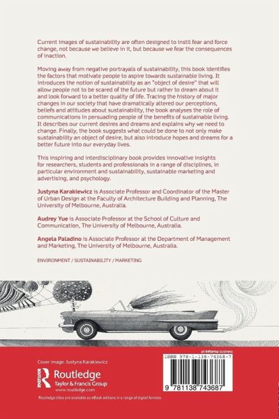 Current images of sustainability are often designed to instil fear and force change, not because we believe in it, but because we fear the consequences of inaction. Moving away from negative portrayals of sustainability, this book identifies the factors that motivate people to aspire towards sustainable living. It introduces the notion of sustainability as an "object of desire" that will allow people not to be scared of the future but rather to dream about it and look forward to a better quality of life. Tracing the history of major changes in our society that have dramatically altered our perceptions, beliefs and attitudes about sustainability, the book analyses the role of communications in persuading people of the benefits of sustainable living. It describes our current desires and dreams and explains why we need to change. Finally, the book suggests what could be done to not only make sustainability an object of desire, but also introduce hopes and dreams for a better future into our everyday lives. This inspiring and interdisciplinary book provides innovative insights for researchers, students and professionals in a range of disciplines, in particular environment and sustainability, sustainable marketing and advertising, and psychology.