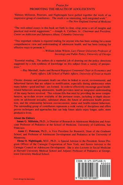 Adolescents have been recognized as critical targets for health promotion efforts for two reasons. (1) The primary causes of adolescent morbidity and mortality are primarily related to preventable social, environmental, and behavioral factors, and (2)Much adult mortality can be attributed to modifiable factors that have their onset during the adolescent years. Over the past few decades, scientific principles for effectively promoting adolescent health have emerged from a variety of disciplines in the health and social sciences. This volume brings together these diverse literatures, providing an integrative, state-of-the-art review of the cross-cutting, critical issues in promoting adolescent health. With a focus in "what works", the volume addresses a wide array of social, economic, cultural, and developmental influences on adolescent health, as well as a variety of specific health-related behaviors. The volume provides promising solutions to the crisis in adolescent health, with recommendations for action that will be valuable to social and health scientists, health care providers, educators, and those who plan and implement programs for adolescent health.