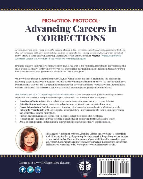 "Promotion Protocol: Advancing Your Career in Corrections." This book is designed for leaders and employees seeking to enhance their careers within the corrections field. The overall goal is to improve the culture within the facility, department, or organization. The key points are: Recruitment, Retention, and Engagement Strategies:The book's first half offers practical tools and insights for leaders who want to improve their recruitment, retention, and engagement strategies. It addresses the challenges of attracting and retaining talent in the corrections industry. Generational Distinctions:The book explores generational differences and how they impact communication, technology and leadership. Understanding these distinctions helps leaders connect more effectively with their teams and transform their leadership skills. Effective Communication:The book emphasizes the importance of practical communication skills for leaders. It provides guidance on building trust and connections and fostering positive relationships. Structured Mentorship Program: The book's second half introduces a six-month structured mentorship program. Leaders can use this program with their staff in small groups, meeting weekly. The program includes weekly articles, mentee preparation questions, and mentor weekly questions. This approach has been proven to enhance engagement and job satisfaction among correctional professionals.