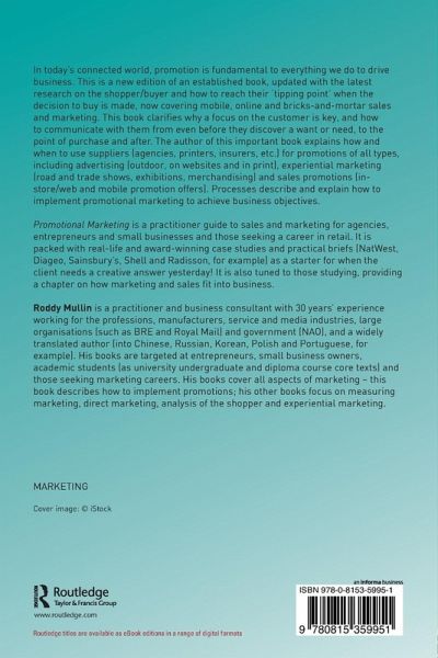 Promotional Marketing is a practitioner guide to sales and marketing for agencies, entrepreneurs and small businesses and those seeking a career in retail. It is packed with real-life and award-winning case studies and practical briefs (NatWest, Diageo, Sainsbury's, Shell and Radisson, for example) as a starter for when the client needs a creative answer yesterday! It is also tuned to those studying, providing a chapter on how marketing and sales fit into business.