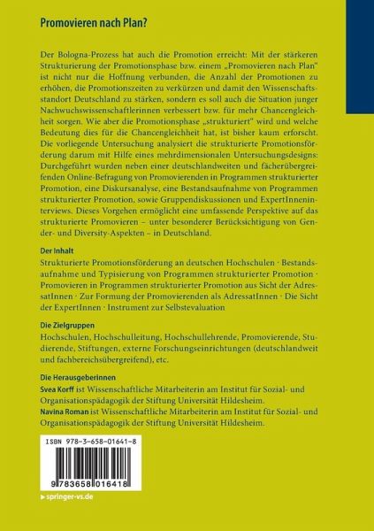 Der Bologna-Prozess hat auch die Promotion erreicht: Mit der stärkeren Strukturierung der Promotionsphase bzw. einem "Promovieren nach Plan" ist nicht nur die Hoffnung verbunden, die Anzahl der Promotionen zu erhöhen, die Promotionszeiten zu verkürzen und damit den Wissenschaftsstandort Deutschland zu stärken, sondern es soll auch die Situation junger Nachwuchswissenschaftlerinnen verbessert bzw. für mehr Chancengleichheit sorgen. Wie aber die Promotionsphase "strukturiert" wird und welche Bedeutung dies für die Chancengleichheit hat, ist bisher kaum erforscht. Die vorliegende Untersuchung analysiert die strukturierte Promotionsförderung darum mit Hilfe eines mehrdimensionalen Untersuchungsdesigns: Durchgeführt wurden neben einer deutschlandweiten und fächerübergreifenden Online-Befragung von Promovierenden in Programmen strukturierter Promotion, eine Diskursanalyse, eine Bestandsaufnahme von Programmen strukturierter Promotion, sowie Gruppendiskussionen und ExpertInneninterviews. Dieses Vorgehen ermöglicht eine umfassende Perspektive auf das strukturierte Promovieren - unter besonderer Berücksichtigung von Gender- und Diversity-Aspekten - in Deutschland.