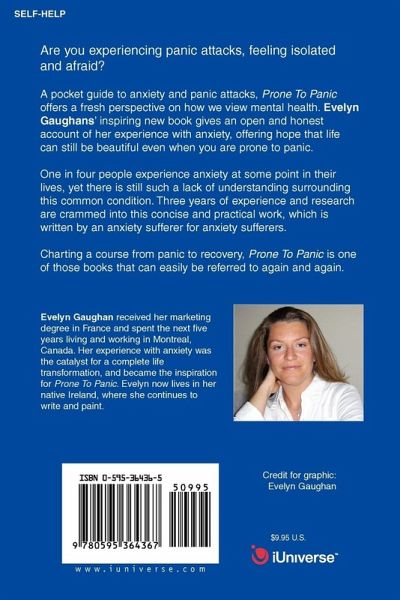 Are you experiencing panic attacks, feeling isolated and afraid? A pocket guide to anxiety and panic attacks, Prone To Panic offers a fresh perspective on how we view mental health. Evelyn Gaughans' inspiring new book gives an open and honest account of her experience with anxiety, offering hope that life can still be beautiful even when you are prone to panic. One in four people experience anxiety at some point in their lives, yet there is still such a lack of understanding surrounding this common condition. Three years of experience and research are crammed into this concise and practical work, which is written by an anxiety sufferer for anxiety sufferers. Charting a course from panic to recovery, Prone To Panic is one of those books that can easily be referred to again and again.