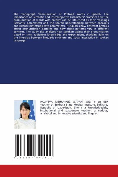 The monograph "Pronunciation of Prefixed Words in Speech: The Importance of Semantic and Intersubjective Parameters" examines how the pronunciation of words with prefixes can be influenced by their meanings (semantic parameters) and the shared understanding between speakers and listeners (intersubjective parameters). It explores how different prefixes affect pronunciation patterns and how these patterns vary in different contexts. The study also analyzes how speakers adjust their pronunciation based on their audience's knowledge and expectations, shedding light on the interplay between linguistic structure and social interaction in spoken language.