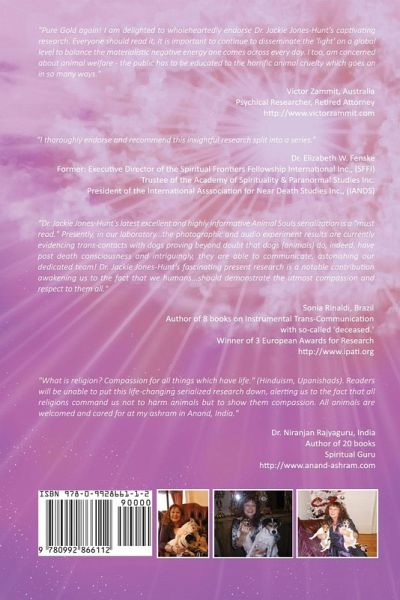 Pure gold! Comprehensive, thought-provoking and paradigm shattering with the power to change lives for the better. Readers' sensitivity and compassion for all fellow animals will be dramatically elevated whilst they learn that all-inclusive compassion also elevates our compassion and treatment of the human animal with enduring, positive consequences as to how we treat each other. Those suffering with bereavement by the loss of an animal companion will be greatly comforted with the deeply moving evidence of their post-death survival clearly documented in these pages while all readers will have a deeper understanding of fellow animals and will never again view their animal companions in a limited way. As we are all animals, human and non-human animals, who are we to say one animal survives death and another does not? After all, humans had tails historically and today human foetuses still have tails in the womb and some human babies are born with tails readily evidenced with medical photographs on the internet. This first generously sized volume is the first instalment in a series which both shockingly evidences animal post-death survival and provides us with the spiritual teachings of non-violence, vegetarianism and all-inclusive compassion of the ancient writers of the Upanishads leading to Hinduism, the long line of ancient Greek vegetarian philosophers, Confucius, the Buddha and Jesus and his first followers. We also look at the vegetarianism since birth of Jesus' brother, James, who led the first followers of Jesus, the vegetarian Jewish-Christians, from Jerusalem, in accordance with Jesus' wishes for several decades before orthodoxy assigned James to the historical scrap heap. Two thousand years of Pauline theology alongside 500 years of Lutheran moulding of thought has shaped our misunderstanding of Jesus' vegetarian teachings. This fascinating and meticulous research has over 30 fantastic pre-publication reviews from professors, international animal charities and fellow authors.