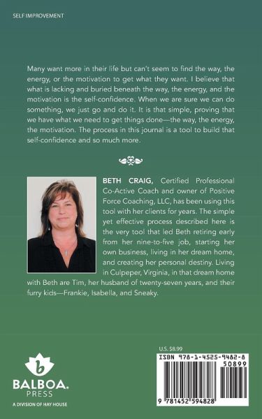 Many want more in their life but can't seem to find the way, the energy, or the motivation to get what they want. I believe that what is lacking and buried beneath the way, the energy, and the motivation is the self-confidence. When we are sure we can do something, we just go and do it. It is that simple, proving that we have what we need to get things done-the way, the energy, the motivation. The process in this journal is a tool to build that self-confidence and so much more.