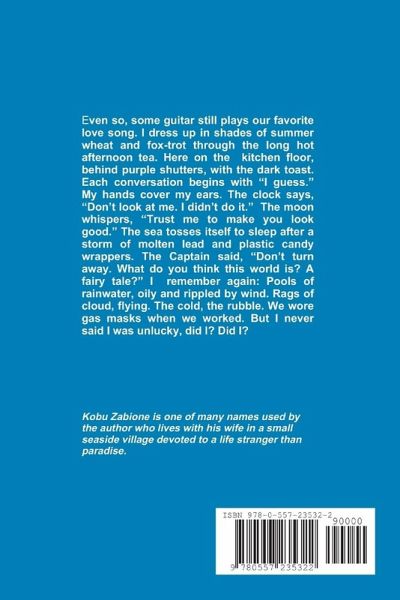 Postmodern prose poems. Of course the unknown poet can produce no papers. He has no face, no name, he is simply like space, but warm and fragrant of fresh bean curd. Because I've read books and appreciate an interesting life, I knock and introduce myself at his door, from which his beard sticks out. Over in one corner of an English-style garden a crew is setting up for a fashion shot. Candy is soft compared to coins. Coins have presidents, buffalos, Indian heads, dates and other features that appeal to collectors. The eyes of the unknown poet follow the young with a sad smile. When the phone rings he doesn't answer. Laundry piles up. One day the circus comes to town and the trapeze artist misses and falls to his death. It's rumored he'd lost his good-luck charm that very same morning. The model poses, the photographer says, "Hold it just like that." He urges me to peek inside for a look, I do, and two turtle doves fly out.