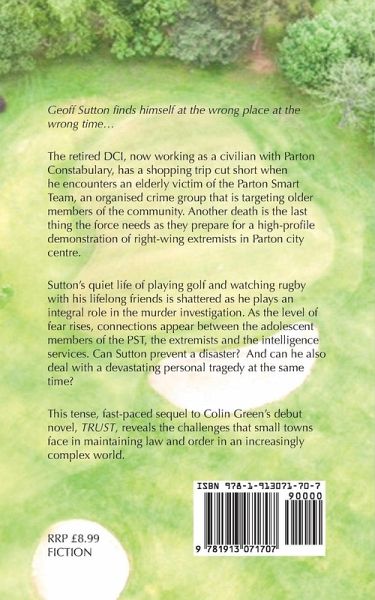 Geoff Sutton finds himself at the wrong place at the wrong time... The retired DCI, now working as a civilian with Parton Constabulary, has a shopping trip cut short when he encounters an elderly victim of the Parton Smart Team, an organised crime group that is targeting older members of the community. Another death is the last thing the force needs as they prepare for a high-profile demonstration of right-wing extremists in Parton city centre. Sutton's quiet life of playing golf and watching rugby with his lifelong friends is shattered as he plays an integral role in the murder investigation. As the level of fear rises, connections appear between the adolescent members of the PST, the extremists and the intelligence services. Can Sutton prevent a disaster? And can he also deal with a devastating personal tragedy at the same time? This tense, fast-paced sequel to Colin Green's debut novel, TRUST, reveals the challenges that small towns face in maintaining law and order in an increasingly complex world.