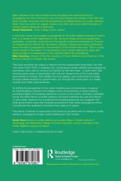 This book examines the origins of Ireland in its first independent incarnation, the Irish Free State (1922-1937). It explores how contemporary public relations and propaganda techniques were used to construct an identity for this new state - a state which after enduring seven years of insurrection and civil war, became one of the most stable democracies in Europe. This stability, the book argues, was constructed not solely through policies enacted by governments, but through the construction of a Gaelic, Catholic and Celtic national identity. By shifting the perspective to how nation building was communicated, it weaves an interdisciplinary narrative that initiates a new understanding of nation building - providing insights of increasing relevance in current world events. Avoiding a simplistic cause and effect history of public relations, the book examines the uses and effects of early public relations from a political and societal perspective and suggests that while governments were only modestly successful in their varied propaganda efforts, cumulatively they facilitated a transition from violence to peace. This will be of interest to researchers and advanced students with an interest in public relations, propaganda studies, nation building and Irish studies.