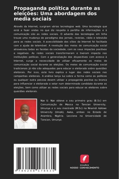Através da Internet, surgiram várias tecnologias web. Uma tecnologia que está a fazer ondas no que diz respeito à partilha de informações e à comunicação são as redes sociais. O advento das tecnologias em linha trouxe uma mudança de paradigma dos jornais, revistas, rádio e televisão para as redes sociais. A acessibilidade dos sítios da Internet foi facilitada com a ajuda do telemóvel. A revolução dos meios de comunicação social atravessou todas as facetas da sociedade, com os seus impactos positivos e negativos. As redes sociais transformaram e tiveram impacto nas instituições políticas. Com a generalização dos dispositivos com acesso à Internet, surge a necessidade de utilizar eficazmente os meios de comunicação social durante as eleições. Os meios de comunicação social tradicionais já não são adequados para educar o eleitorado sobre questões eleitorais. Por isso, este livro explica o lugar das redes sociais nas campanhas eleitorais. A análise lança luz sobre a forma como os políticos ou qualquer outra pessoa devem utilizar a propaganda positiva ou branca para influenciar o eleitorado a votar num determinado candidato durante as eleições, bem como utilizar as redes sociais para educar os eleitores sobre questões eleitorais.