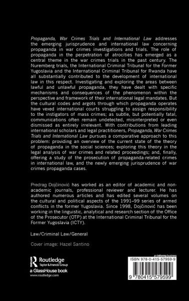 Propaganda, War Crimes Trials and International Law addresses the emerging jurisprudence and international law concerning propaganda in war crimes investigations and trials.
