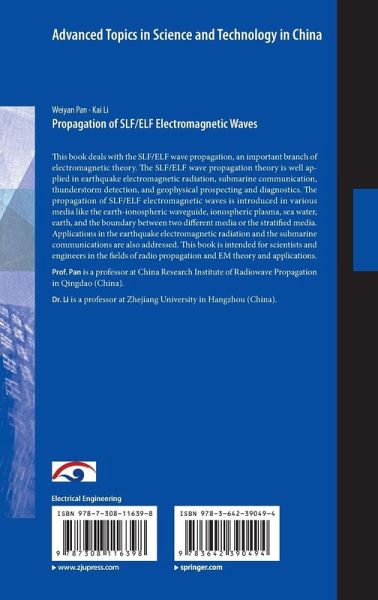This book deals with the SLF/ELF wave propagation, an important branch of electromagnetic theory. The SLF/ELF wave propagation theory is well applied in earthquake electromagnetic radiation, submarine communication, thunderstorm detection, and geophysical prospecting and diagnostics. The propagation of SLF/ELF electromagnetic waves is introduced in various media like the earth-ionospheric waveguide, ionospheric plasma, sea water, earth, and the boundary between two different media or the stratified media. Applications in the earthquake electromagnetic radiation and the submarine communications are also addressed. This book is intended for scientists and engineers in the fields of radio propagation and EM theory and applications. Prof. Pan is a professor at China Research Institute of Radiowave Propagation in Qingdao (China). Dr. Li is a professor at Zhejiang University in Hangzhou (China).