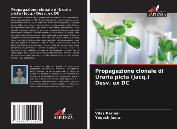 Presentiamo un metodo per la moltiplicazione su larga scala di Prithakparni, Uraria picta (Jacq) Desv ex DC. È stato ottenuto da espianti nodali su terreno MS integrato con BA e TDZ. U. picta è una pianta medicinale preziosa, utilizzata come antidoto contro i morsi di alcune vipere, per la guarigione delle fratture, nel trattamento della tosse, dei brividi e della febbre, della gonorrea e dei disturbi neurologici primari. È anche un componente indispensabile delle formulazioni ayurvediche "Dashmularistha", un noto tonico, e "Abana", utile nel trattamento dell'ipertensione, della tachicardia e dell'angina. È fonte di sostanze fitochimiche che hanno dimostrato una serie di attività biologiche come proprietà antinfiammatorie, antitrombotiche ed epatoprotettive grazie alla loro capacità di eliminare i radicali liberi. La rigenerazione naturale dell'Uraria picta è ostacolata dalla scarsa vitalità dei semi e dalla bassa percentuale di germinazione. Tuttavia, la produzione su larga scala è un prerequisito per soddisfare le esigenze farmaceutiche e anche per la conservazione efficace di questa preziosa pianta medicinale. Attraverso questa procedura sono state generate circa 196 piantine da un singolo espianto nodale su due sottocolture.