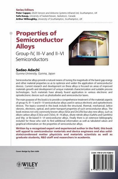The main purpose of this book is to provide a comprehensive treatment of the materials aspects of group-IV, III V and II VI semiconductor alloys used in various electronic and optoelectronic devices. The topics covered in this book include the structural, thermal, mechanical, lattice vibronic, electronic, optical and carrier transport properties of such semiconductor alloys. The book reviews not only commonly known alloys (SiGe, AlGaAs, GaInPAs, and ZnCdTe) but also new alloys, such as dilute-carbon alloys (CSiGe, CSiSn, etc.), III N alloys, dilute-nitride alloys (GaNAs and GaInNAs) and Mg- or Be-based II VI semiconductor alloys. Finally there is an extensive bibliography included for those who wish to find additional information as well as tabulated values and graphical information on the properties of semiconductor alloys.
