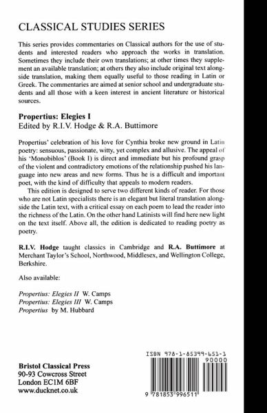 Propertius' celebration of his love for Cynthia broke new ground in Latin poetry: sensuous, passionate, witty, yet complex and allusive. The appeal of his 'Monobiblos' (Book I) is direct and immediate but his profound grasp of the violent and contradictory emotions of the relationship pushed his language into new areas and new forms. So he is a difficult and important poet, with the kind of difficulty that appeals to modern readers. This edition is designed to serve two different kinds of readers. For those who are not Latin specialists there is an elegant but literal translation alongside the Latin text, with a critical essay on each poem to lead the reader into the richness of the Latin. On the other hand Latinists will find here new light on the text itself. Above all, the edition is dedicated to reading poetry as poetry.