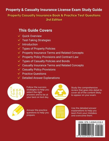 Test Prep Books' Property and Casualty Insurance License Exam Study Guide: Property Casualty Insurance Book and Practice Test Questions [3rd Edition] Made by Test Prep Books experts for test takers trying to achieve a great score on the Property and Casualty exam. This comprehensive study guide includes: * Quick Overview Find out what's inside this guide! * Test-Taking Strategies Learn the best tips to help overcome your exam! * Introduction Get a thorough breakdown of what the test is and what's on it! * Types of Property Policies Covers sections such as Basic Insurance Principles, Insurable Risk, Risk Management, Property Insurance, Business Owner Policies and Commercial Insureds and Policies * Property Insurance Terms and Related Concepts Covers the Property Insurance Terms and Related Concepts section * Property Policy Provisions and Contract Law Covers the Property Policy Provisions and Contract Law section * Types of Casualty Policies and Bonds Covers the Types of Casualty Insurance section * Casualty Insurance Terms and Related Concepts Covers the Casualty Insurance section * Casualty Policy Provisions Covers the Casualty Policy Provisions section * Practice Questions Practice makes perfect! * Detailed Answer Explanations Figure out where you went wrong and how to improve! Disclaimer: Test Prep Books is not affiliated with or endorsed by any official testing organization. All organizational and test names are trademarks of their respective owners. Key Features and Benefits: * Comprehensive Review: Each section of the test has a comprehensive review created by Test Prep Books that goes into detail to cover all of the content likely to appear on the test. * Practice Test Questions: We want to give you the best practice you can find. That's why the Test Prep Books practice questions are as close as you can get to the actual Property and Casualty test. * Answer Explanations: Every single problem is followed by an answer explanation. We know it's frustrating to miss a question and not understand why. The answer explanations will help you learn from your mistakes. That way, you can avoid missing it again in the future. * Test-Taking Strategies: A test taker has to understand the material that is being covered and be familiar with the latest test taking strategies. These strategies are necessary to properly use the time provided. They also help test takers complete the test without making any errors. Test Prep Books has provided the top test-taking tips. * Customer Service: We love taking care of our test takers. We make sure that you interact with a real human being when you email your comments or concerns. Anyone planning to take this exam should take advantage of this Test Prep Books study guide. Purchase it today to receive access to: 1. Property and Casualty review materials 2. Property and Casualty practice questions