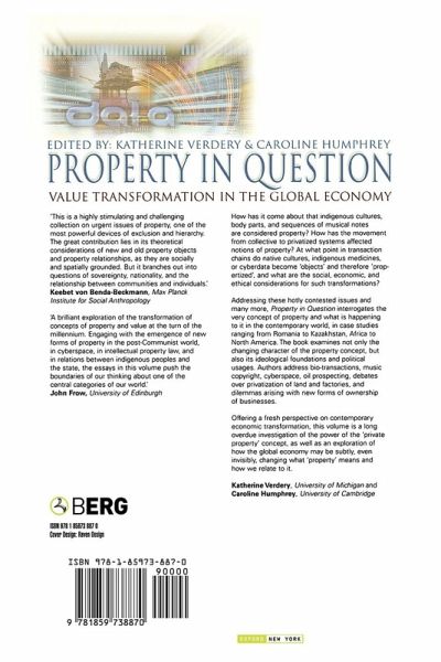 How has it come about that indigenous cultures, body parts, and sequences of musical notes are considered property? How has the movement from collective to privatized systems affected notions of property? At what point in transaction chains do native cultures, indigenous medicines, or cyberdata become objects and therefore propertized, and what are the social, economic, and ethical considerations for such transformations? Addressing these hotly contested issues and many more, Property in Question interrogates the very concept of property and what is happening to it in the contemporary world, in case studies ranging from Romania to Kazakhstan, Africa to North America. The book examines not only the changing character of the property concept, but also its ideological foundations and political usages. Authors address bio-transactions, music copyright, cyberspace, oil prospecting, debates over privatization of land and factories, and dilemmas arising with new forms of ownership of businesses. Offering a fresh perspective on contemporary economic transformation, this volume is a long overdue investigation of the power of the private property concept, as well as an exploration of how the global economy may be subtly, even invisibly, changing what property means and how we relate to it.