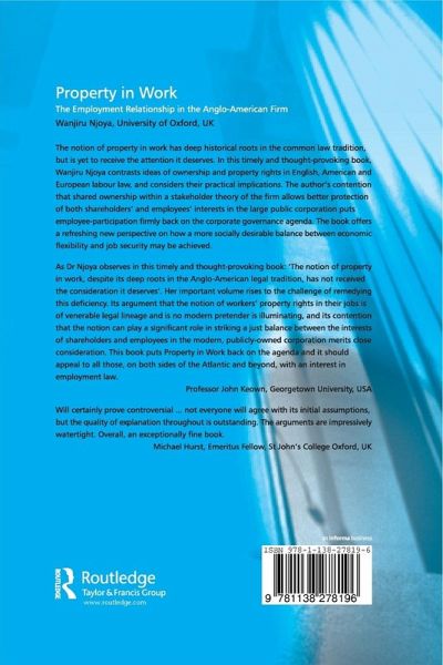 This book investigates the links between property rights and job security from a historical and comparative standpoint. The author's analysis of English, American and European law offers a refreshing new perspective on current debates in labour law and corporate governance.