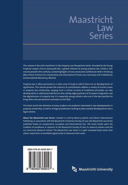 This volume is the sixth instalment in the Property Law Perspectives Series. Founded by the Young Property Lawyers Forum (www.yplf.net), a global network of young property law scholars, this volume presents the carefully curated highlights of two consecutive conferences held in Hamburg (Max Planck Institute for Comparative and International Private Law, Germany) and in Monterrey (Universidad de Monterrey, Mexico). Property law is often perceived as a static area of study in which there are no developments of significance. This volume proves the contrary. Its contributions address a variety of current issues in property law scholarship, ranging from a critical scrutiny of traditional principles via new developments in selected jurisdictions to the cutting-edge questions of European integration and the digitalisation of property law. It is especially young scholars who are in the best position to bring these new perspectives and topics to the field. This book merits the attention of every student and academic interested in new developments in property scholarship, as well as of legal practitioners looking to place societal developments into a legal context.