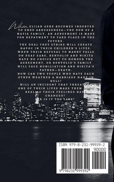 When Elijah Ashe becomes indebted to Enzo Abruzzenesa-the Don of a mafia family, an agreement is made for repayment to take place in the future. The deal they strike will create havoc in their children's lives. When their refusal to marry falls on deaf ears, Benvolio and Nikita have no choice but to honour the agreement, or Benvolio's family will face humiliation and Nikita's father-death. How can two people who hate each other weather a marriage made in Hell? Will an incident that threatens one of their lives make them both realise their feelings have changed? Or is it too late?