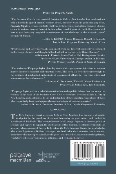 In an effort to understand the reasons for and consequences of the political backlash to the U.S. Supreme Court decision, Kelo v. New London, this book brings together a diverse group of scholars and practitioners who explore the uses and abuses of eminent domain and regulatory takings. Two authors propose additional constraints on eminent-domain powers, one chapter considers compensation determination theoretically, another describes compensation determination in practice, three authors explore the politics of takings including post-Kelo legislation, four chapters examine unintended consequences of takings, and the concluding chapter explains the inherent political instability and economic inefficiency resulting from land-use regulation. This book brings together a diverse group of scholars and practitioners who explore the uses and abuses of eminent domain and regulatory takings
