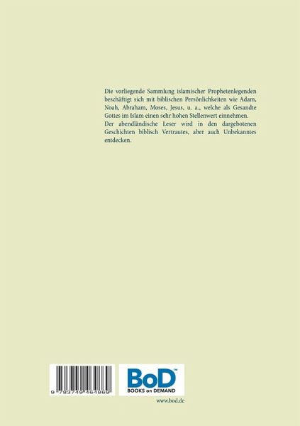 Die vorliegende Sammlung islamischer Prophetenlegenden beschäftigt sich mit biblischen Persönlichkeiten wie Adam, Noah, Abraham, Moses, Jesus, u. a., welche als Gesandte Gottes im Islam einen sehr hohen Stellenwert einnehmen.Der abendländische Leser wird in den dargebotenen Geschichten biblisch Vertrautes, aber auch Unbekanntes entdecken.