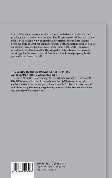 The first section of the volume discusses prophecy from theoretical perspectives. The second sections contains studies on prophecy in texts from Mari and Assyria and other cuneiform sources. The third section discusses biblical prophecy in its ancient Near Eastern context, while the fourth section focuses on prophets and prophecy in the Hebrew Bible/Old Testament. Even prophecy in the Dead Sea Scrolls is discussed in the fifth section.