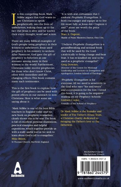 In this compelling book, Mark Stibbe argues that God wants to use Christians to speak prophetically into the lives of unbelievers, waking them up to the fact that Jesus is alive and he knows their every thought, word and action. There are many biblical examples of God's people using prophecy in their witness to unbelievers. Jesus used prophecy in His ministry to seekers. After Pentecost, God gave the gift of prophecy to believers as one resource among many in their witness to the world. Furthermore, Christians today receive prophecies for those who don't know Christ, often with immediate and life-changing effects. This book contains many such testimonies.