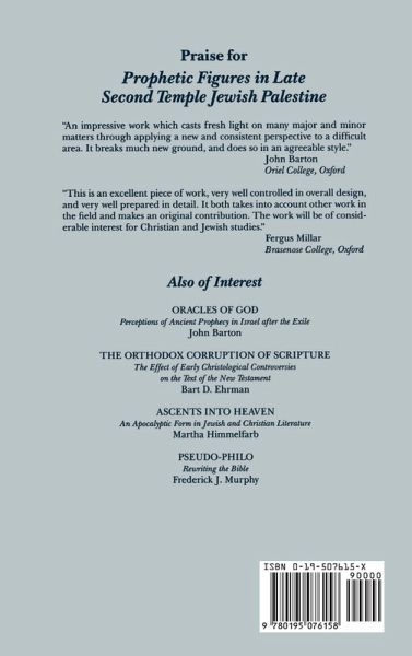 Based on a revised Oxford University doctoral dissertation, this work examines the evidence from Josephus for prophetic figures in Jewish Palestine in the late Second Temple period, approximately 150 BCE to 70CE. Recent years have seen renewed interest in the question of how Jesus of Nazareth should be classified in terms of religious or social "type." Was he a teacher, prophet, miracle-worker, magician, charismatic or militant revolutionary? Although there is no real consensus among New Testament scholars on this question, "prophet" is probably the leading contender. If this designation is to be meaningful, however, a clearer picture of first-century Jewish prophecy in general is essential. The present work is intended as a contribution towards a better understanding of Jewish prophecy around the time of Jesus. Josephus is without question our most important source of information about events in Palestine in this period. Although Josephus is often cited in works on early Jewish prophecy, however, there has until now been no separate study of this material. Gray here not only offers the first comprehensive examination of Josephus' writings on specific prophetic figures, but also analyses in detail his general views on prohecy and the prohetic claim he makes for himself.