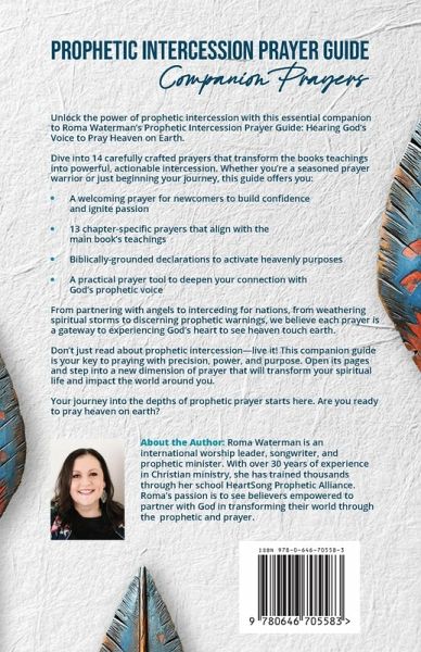 Unlock the power of prophetic intercession with this essential companion to Prophetic Intercession Prayer Guide: Hearing God's Voice to Pray Heaven on Earth. This book is a selection of prayers based off Roma's book "Prophetic Intercession Prayer Guide". Please purchase that book first to and use this book of companion prayers alongside it. Dive into 14 carefully crafted prayers that transform the book's teachings into powerful, actionable intercession. Whether you're a seasoned prayer warrior or just beginning your journey, this guide offers you: A welcoming prayer for newcomers to build confidence and ignite passion13 chapter-specific prayers that align with the main book's teachingsBiblically grounded declarations to activate heavenly purposesPractical tools to deepen your connection with God's prophetic voice From partnering with angels to interceding for nations, from weathering spiritual storms to discerning prophetic warnings, each prayer is a gateway to experiencing God's heart to see heaven touch earth. Don't just read about prophetic intercession-live it! This companion guide is your key to praying with precision, power, and purpose. Open its pages and step into a new dimension of prayer that will transform your spiritual life and impact the world around you. Your journey into the depths of prophetic prayer starts here. Are you ready to pray heaven on earth?