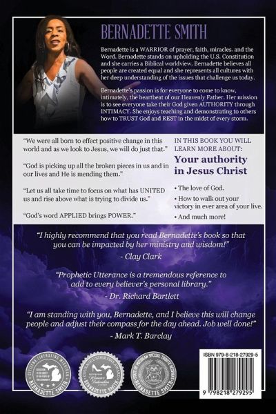 Prophetic Utterances from the Holy Spirit is bound to inspire and encourage you in your personal relationship with Jesus. Through Bernadette Smith's testimonies of angelic encounters, visions, and prophetic utterances from the Holy Ghost, you too can be set free and delivered. GLORY BE TO GOD! God will meet you as you read through the pages of this powerful book. Bernadette shares the truth about the day we are in, brings great hope and teaches how to have an intimate relationship with Jesus Christ. Prepare to be transformed, and awakened with a hunger for a deeper walk with God.