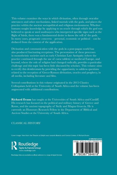 This volume examines the ways in which divination, often through oracular utterances and other mechanisms, linked mortals with the gods, and places the practice within the ancient sociopolitical and religious environment. Whether humans sought knowledge by applying to an oracle through which the god was believed to speak or used soothsayers who interpreted specific signs such as the flight of birds, there was a fundamental desire to know the will of the gods. In many cases, pragmatic concerns - personal, economic or political - can be deduced from the context of the application. Divination and communication with the gods in a post-pagan world has also produced fascinating receptions. The presentation of these processes in monotheistic societies such as early Christian Late Antiquity (where the practice continued through the use of curse tablets) or medieval Europe, and beyond, where the role of religion had changed radically, provides a particular challenge and this topic has been little discussed by scholars. This volume aims to rectify this desideratum by providing the opportunity to address questions related to the reception of Greco-Roman divination, oracles and prophecy, in all media, including literature and film. Several contributions in this volume originated in the 2015 Classics Colloquium held at the University of South Africa and the volume has been augmented with additional contributions.