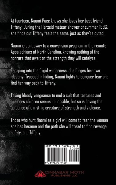 "At fourteen, Naomi Pace knows she loves her best friend, Tiffany. During the Perseid meteor shower of summer 1993, she finds out Tiffany feels the same, just as they're outed. Naomi is sent away to a conversion program in the remote Appalachians of North Carolina, knowing nothing of the horrors that await or the strength they will catalyze. Escaping into the frigid wilderness, she forges her own destiny. Trapped in hiding, Naomi fights to conquer fear and find her way back to Tiffany. Taking bloody vengeance to end a cult that tortures and murders children seems impossible, but so is having the guidance of a mythic creature of strength and violence. Those who hurt Naomi as a girl will come to fear the woman she has become and the path she will tread to find revenge, safety, and Tiffany"--