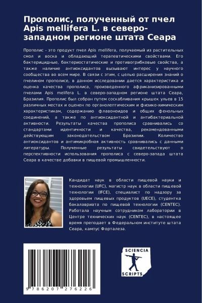 Propolis - äto produkt pchel Apis mellifera, poluchaemyj iz rastitel'nyh smol i woska i obladaüschij terapewticheskimi swojstwami. Ego baktericidnye, bakteriostaticheskie i protiwogribkowye swojstwa, a takzhe nalichie antioxidantow wyzywaüt interes u nauchnogo soobschestwa wo wsem mire. V swqzi s ätim, s cel'ü rasshireniq znanij o pchelinom propolise, w dannom issledowanii daetsq harakteristika i ocenka kachestwa propolisa, proizwedennogo afrikanizirowannymi pchelami Apis melífera L. w sewero-zapadnom regione shtata Seara, Braziliq. Propolis byl sobran putem soskabliwaniq kryshek ul'ew w 15 razlichnyh mestah i ocenen po organolepticheskim i fiziko-himicheskim harakteristikam, soderzhaniü flawonoidow i obschih fenol'nyh soedinenij, a takzhe po antioxidantnoj i antibakterial'noj aktiwnosti. Rezul'taty kachestwa propolisa srawniwalis' so standartami identichnosti i kachestwa, rekomendowannymi dejstwuüschim zakonodatel'stwom Brazilii. Kolichestwo antioxidantow i antimikrobnaq aktiwnost' srawniwalis' s dannymi literatury. Poluchennye rezul'taty swidetel'stwuüt o perspektiwnosti ispol'zowaniq propolisa s sewero-zapada shtata Seara w kachestwe dobawki w pischewoj promyshlennosti.