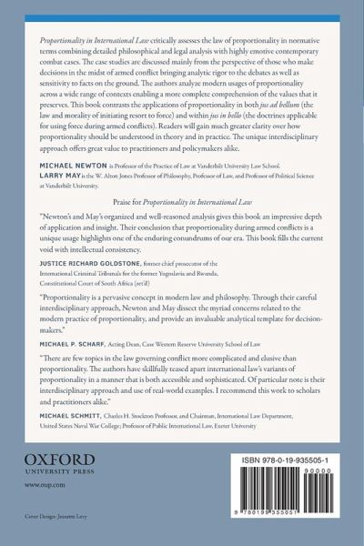 Proportionality is intimately linked to the overarching concepts of self-defense, lawful force, and the controlled application of violence. It is one of the most visible facets of humanitarian law designed to reduce unnecessary human suffering and avoid excessive damage to property, and the natural environment. However, its application has come under renewed scrutiny and sustained controversy as a result of wars against non-state actors and from the extensive use of drones, human shields, cyber war techniques, and counterinsurgency tactics. Proportionality in International Law critically assesses the law of proportionality in normative terms combining abstract philosophical and legal analysis with highly emotive contemporary combat cases. The principle of proportionality permits actions that are logically linked to the intended goal, and thus defines the permissible boundaries for the initiation and conduct of modern wars. The case studies discussed in this book are predominantly from the perspective of those who make decisions in the midst of armed conflict, bringing analytic rigor to the debates as well as sensitivity to facts on the ground. The authors analyze modern usages of proportionality across a wide range of contexts enabling a more complete comprehension of the values that it preserves. This book contrasts the applications of proportionality in both jus ad bellum (the law and morality of resort to force) and within jus in bello (the doctrines applicable for using force in the midst of conflicts). Proportionality in International Law provides the reader with a unique interdisciplinary approach, offering practitioners and policymakers alike greater clarity over how proportionality should be understood in theory and in practice.