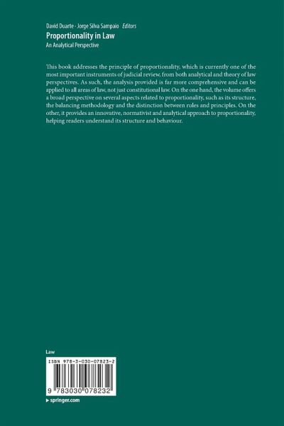 This book addresses the principle of proportionality, which is currently one of the most important instruments of judicial review, from both analytical and theory of law perspectives. As such, the analysis provided is far more comprehensive and can be applied to all areas of law, not just constitutional law. On the one hand, the volume offers a broad perspective on several aspects related to proportionality, such as its structure, the balancing methodology and the distinction between rules and principles. On the other, it provides an innovative, normativist and analytical approach to proportionality, helping readers understand its structure and behaviour.